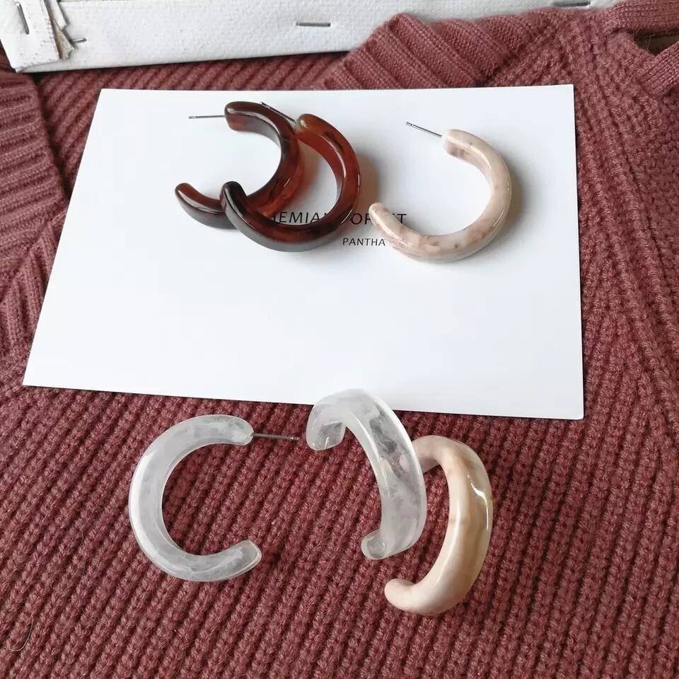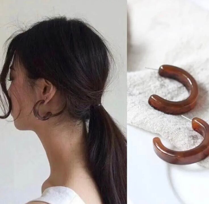 うっすらとべっ甲柄が入ったカーブのかかった可愛らしいピアス。